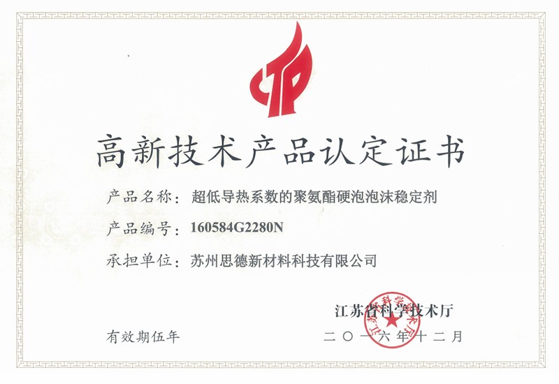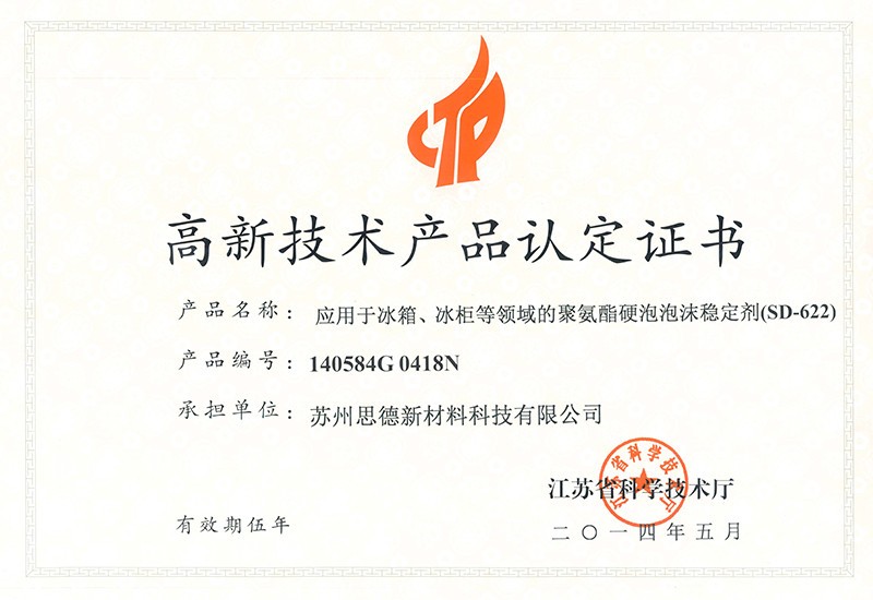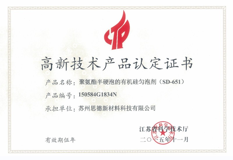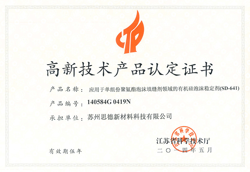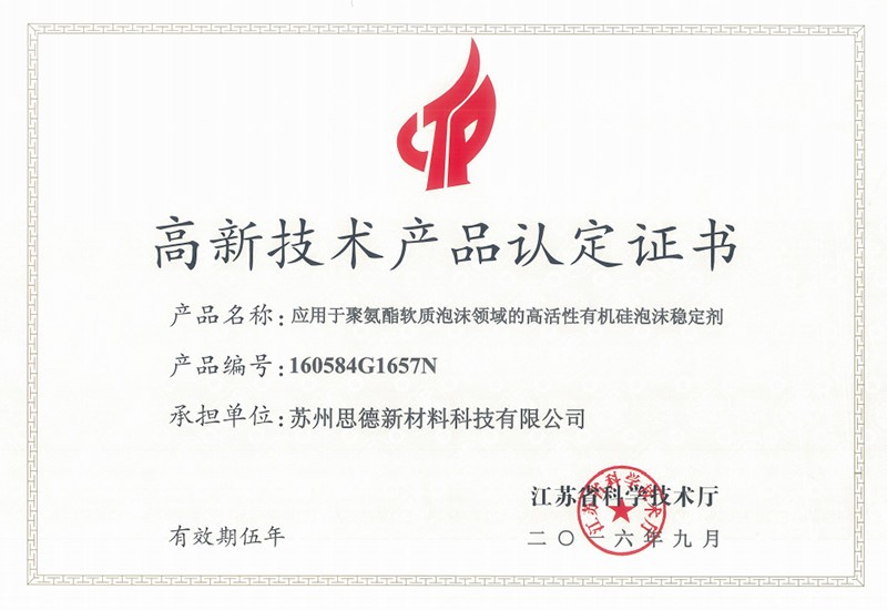 公司目前在售產(chǎn)品主要有聚氨酯硬泡用有機硅泡沫穩(wěn)定劑系列產(chǎn)品、聚氨酯軟泡用有機硅泡沫穩(wěn)定劑系列產(chǎn)品、聚氨酯OCF用有機硅泡沫穩(wěn)定劑系列產(chǎn)品、聚氨酯高回彈用有機硅泡沫穩(wěn)定劑系列產(chǎn)品、聚氨酯慢回彈用有機硅泡沫穩(wěn)定劑系列產(chǎn)品,其中有20多個產(chǎn)品被認(rèn)定為江蘇省高新技術(shù)產(chǎn)品。